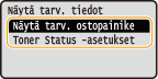 <Näytä tarv. tiedot (Etäk./Toner Status)>