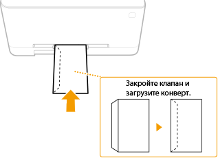 Загружайте конверты таким образом, чтобы отворот был направлен в левую сторону, как показано на иллюстрации. |