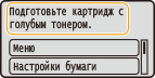 Это сообщение уведомляет о том, что вскоре потребуется замена картриджа с тонером. Проверьте наличие картриджа с тонером для замены. Замените картридж с тонером, если это сообщение появилось перед печатью большого задания. Оно появляется, если для параметра <Действие при предупреждении> задано значение <Остановить печать> (