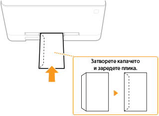 Зареждайте пликовете така, че краят с капака да е насочен към лявата страна, както е показано на илюстрацията. |