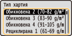 Размерите на хартията, запаметени чрез процедурата по-горе, се показват на екрана за избор на размер на хартията за касетата за хартия или слота за ръчно подаване.