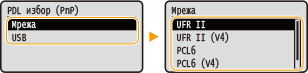 Изберете език за описание на страници, така че устройството да се разпознава като принтер, който е съвместим с този език, когато го свързвате към компютър чрез функцията "Plug-n-Play".