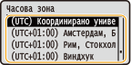 Задайте <Часова зона>, преди да настроите текущите дата и час. Ако промените настройката за <Часова зона> по-късно, текущите дата и час също ще се променят по съответния начин. |