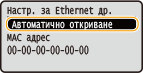 Ръчно задаване на Ethernet настройки1 | Изберете <Автоматично откриване> <Изкл.>. |