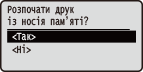 Якщо для <Екран за підключення носія пам’яті> встановлено значення <Увімк.>, відображається екран із можливістю почати друк із носія пам’яті, коли ви вставляєте пристрій пам’яті USB з відображуваним екраномГоловний.<Екран за підключення носія пам’яті> ![]() Оскільки екрани можуть не відображатися в режимі сну, вийдіть із цього режиму, перш ніж вставляти пристрій USB-пам’яті. |
