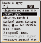 Щоб дізнатися, як виконувати друк із використанням одних і тих самих параметрів, див. розділ Друк із носія пам’яті |