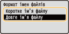 Виберіть параметр <Коротке ім’я файлу> або <Довге ім’я файлу>