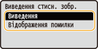 <Багатоцільовий лоток> <Примусове виведення>  <Відображення помилки> <Шухляда 1> <Примусове виведення>  <Відображення помилки> |