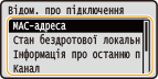 Якщо IP-адреса відображається як «0.0.0.0», це означає, що її вказано неправильно. Підключення апарата до концентратора-комутатора або мережевого моста може спричинити помилку підключення, навіть якщо IP-адреса вказана правильно. Щоб вирішити цю проблему, установіть певний проміжок часу, перш ніж почнеться підключення. Установлення часу очікування підключення до мережі Список поточних параметрів мережі можна надрукувати. Список даних користувача та/або список даних системного адміністратора |