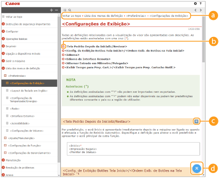 Clique para definir os parâmetros utilizados para determinar a visualização do Manual do utilizador, tais como o tamanho de carateres ou o esquema.