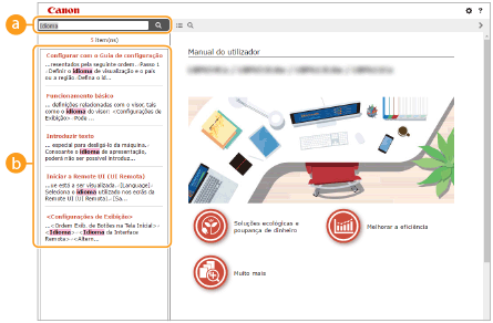 Clique para visualizar informações sobre como ver o Manual do utilizador, como efetuar uma procura e outras informações.