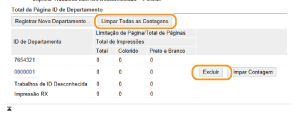 Se pretender repor as contagens a zero, clique na ligação de texto correspondente abaixo de [ID de Departamento] e clique em [Limpar Contagem]  [OK]. Se quiser repor a zeros as contagens de todas as ID de departamento, clique em [Limpar Todas as Contagens]  [OK].