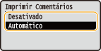 Selecionar <Ativado> permite imprimir no modo de poupança de toner. Selecione <Ativado> quando pretender verificar o esquema ou outras características de aspeto antes de iniciar um trabalho de impressão grande. Consulte