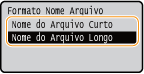 Selecione <Nome do Arquivo Curto> ou <Nome do Arquivo Longo>