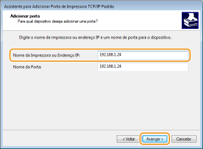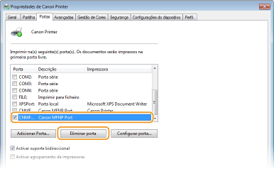 Se tiver alterado o endereço IP da máquina ou se tiver selecionado uma porta incorreta durante a instalação de controladores, adicione uma nova porta.