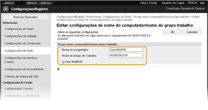 O nome de grupo de trabalho é um nome utilizado para agrupar vários computadores de forma a disponibilizar funções básicas de rede, como partilha de ficheiros, numa rede Windows. Introduza carateres alfanuméricos para o nome do grupo de trabalho ao qual a máquina pertence.
