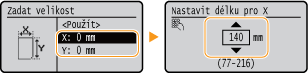 zadejte šířku papíru ![]() ![]() <Y> zadejte délku papíru ![]() ![]()