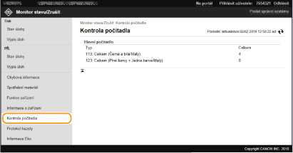 V seznamu budou uvedeny všechny právě tištěné dokumenty i dokumenty čekající na tisk, a to bez ohledu na nastavení správy ID oddělení.