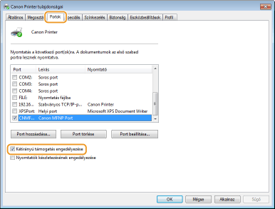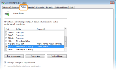 Ha hálózati kapcsolatot használ, és megváltoztatta a készülék IP-címétHozzá kell adnia egy új portot. Nyomtatóportok konfigurálása