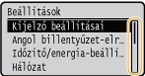 A kijelző számos beállítása, többek között a megjelenítés nyelve is módosítható: <Kijelző beállításai>