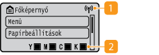 Megjeleníti a festékkazettákban lévő festékszintet. El van rejtve olyankor, amikor a Főképernyő aktív.