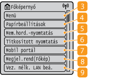 Az <Funkcióbeállítások>, a <Beállítások> és sok más készülékbeállítás ezzel a gombbal indítható. A beállításokat tartalmazó menü