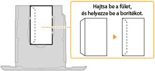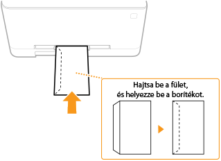 A Monarch, COM10, DL és ISO-C5 borítékokat álló tájolással helyezze be (a hosszú szélek érintkezzenek a két széllel) úgy, hogy a nem ragasztós oldal (elülső oldal) felfelé nézzen. A borítékok hátoldalára nem lehet nyomtatni.