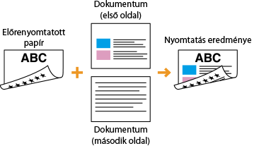 A <Papíradagolási mód váltása> beállításHa felváltva nyomtat egy- és kétoldalasan az előnyomott papírokra, akkor minden váltáskor módosítania kell a nyomtatandó oldalt. Ha viszont a <Papíradagolási mód váltása> beállítás a <Nyomtatott oldal prioritása> értékre van állítva, akkor a kétoldalas nyomtatásnál a fejléces papír behelyezésekor alkalmazott helyzet használható egyoldalas nyomtatáshoz is. Ez a beállítás különösen hasznos, ha gyakran kell egy- és kétoldalas nyomatot is készítenie. <Papíradagolási mód váltása>