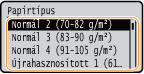 Ha gyakran kell módosítania a betöltendő papírt, állítsa <Tetszőleges> értékre; ezzel csökken a beállítás módosításához minden egyes alkalommal szükséges lépések száma. Vegye azonban figyelembe, hogy ezzel a beállítással a készülék akkor is nyomtathat, ha nem egyezik a nyomtató-illesztőprogramban megadott papírtípus-beállítás a készülékbe ténylegesen beadagolt papír típusával.