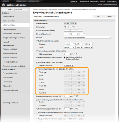 *Ha a készüléket nem tud automatikusan kikapcsolni a megadott időpontban, akkor legfeljebb tíz percen keresztül percenként újra megkísérli a kikapcsolást. Ha a kikapcsolás tíz kísérlet után sem sikerül, akkor az automatikus kikapcsolás az adott napon már nem lehetséges.
