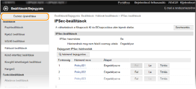 Kattintson a [Beállítások/Bejegyzés] lehetőségre a Portál oldalon (főoldalon). A Távoli felhasználói felület képernyője