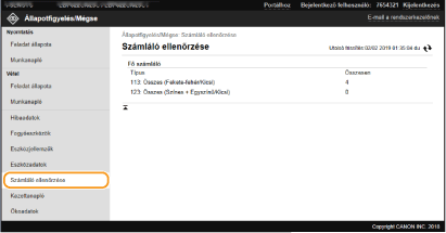 Jelentkezzen be a Távoli felhasználói felületre (A Távoli felhasználói felület elindítása [Állapotfigyelés/Mégse]  [Számláló ellenőrzése]