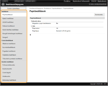 A Távoli felhasználói felületen a készülék számos beállítása módosítható. A legtöbb beállítás a készüléken is megadható, de vannak olyanok is, amelyek csak a Távoli felhasználói felületen. Ebben a fejezetben azt az alapvető eljárást mutatjuk be, amelyet követve módosíthatja a készülék beállításait a Távoli felhasználói felületről.