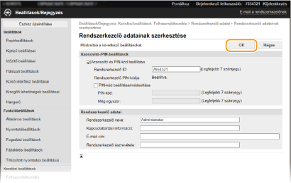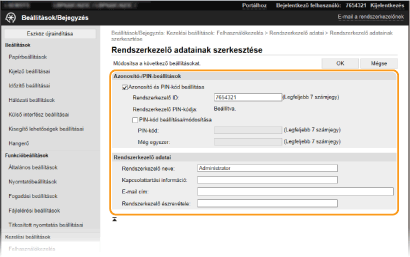 Néhány beállítás csak akkor módosítható, ha rendszerkezelői módban jelentkezik be.