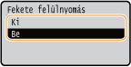 Ha a <Be> lehetőséget választja, a dokumentumtól függően előfordulhat, hogy az oldal élhatáros részei nem lesznek kinyomtatva, vagy a kinyomtatott oldalak részben foltosak lesznek.