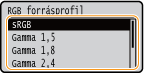 Ez a beállítás nem érvényesül olyankor, amikor az <RGB forrásprofil> a <Nincs> lehetőségre van állítva.