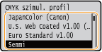Ha az <CMYK szimulációs profil> beállításnál a <Nincs> érték van megadva