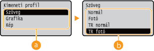 Válasszon módot a dokumentumok simított formában történő nyomtatásához. Ha a nyomat minősége nem elfogadható <Mód 1> (alapértelmezett) módban, próbáljon ki egy másik módot.