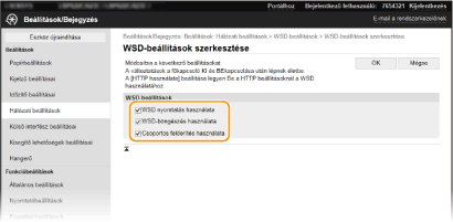 WSD-n keresztüli nyomtatáshoz jelölje be ezt a jelölőnégyzetet. Ha nem használ WSD-nyomtatást, akkor törölje a jelet a jelölőnégyzetből. [WSD-böngészés használata]