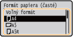 Ak často potrebujete meniť vkladaný papier, nastavte možnosť <Voľný formát>. Takto zredukujete počet krokov potrebných pri každej zmene nastavenia. Tiež sa môže zobraziť chybové hlásenie, ak je nastavenie v tlačiarni výrazne odlišné ako veľkosť vloženého papiera.
