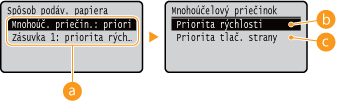 Odporúčame vybrať položku <Priorita rýchlosti>, ak nepotrebujete zvážiť, na ktorú stranu sa má tlačiť.