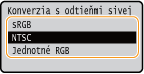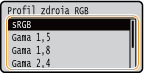 Nastavenie tejto položky je nedostupné, ak je položka <Profil zdroja RGB> nastavená na možnosť <Žiadne>.