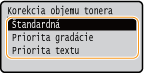 Upravuje množstvo dodávaného tonera, aby sa zaručilo vhodné rozlíšenie pre text a línie ako aj vhodný farebný tón pre iné typy tlačových údajov.