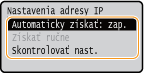 Skontrolujte, či je položka <Automatická adresa IP> nastavená na <Zap.>.