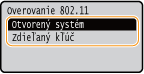 Ak je na bezdrôtovom smerovači nastavené overovanie zdieľaným kľúčom, pri pripájaní k bezdrôtovej sieti LAN dôjde v zariadení k chybe overenia. Ak sa to stane, zariadenie automaticky zmení nastavenie na <Zdieľaný kľúč> a znova sa pokúsi o pripojenie.