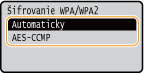 Nastaví ako metódu šifrovania AES-CCMP.