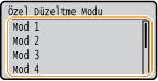 Verileri yumuşak bir yüzey ile yazdırmak için modu belirtin. <Mod 1> (varsayılan) seçeneğindeki çıktıların kalitesi kabul edilebilir değilse, başka bir mod deneyin.