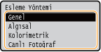 <RGB Kaynak Profili> öğesinde renk eşleştirmesi gerçekleştirirken öncelik verilecek öğeyi seçin.