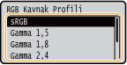 Makinenin yeniden üretim aralığındaki RGB renk değerini mümkün olduğunca doğru bir biçimde yeniden üretmek isterseniz bu seçeneği ayarlayın.