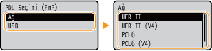 Bir sayfa açıklaması dili seçin, böylece makine, USB aracılığıyla bir bilgisayara bağlandığında o dil ile uyumlu bir yazıcı olarak algılanır.
